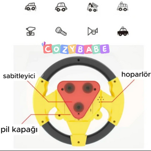 Cozy seslendirmeli direksiyon setiyle çocuğunuzu da kendiniz gibi araba tutkunu yapabilirsiniz, 360 dönüş açısıyla ve yapıştırılabilir sabit silikonuyla yanınızda resmen ikinci bir şoför olarak çocuğunuz yer alacak.