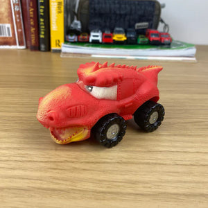 kırmızı ejderha, mavi balina, mavi araba, pembe araba, polis arabası |